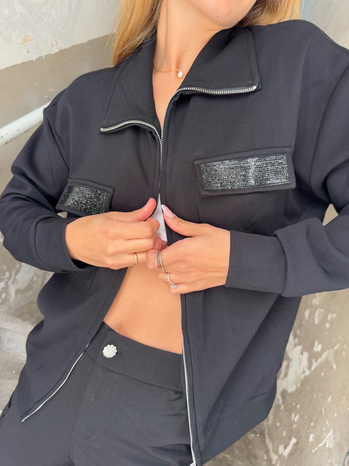 ג'קט הודיה יהלומים שחורים