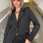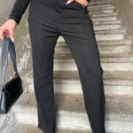 מכנס בד שחור לוז